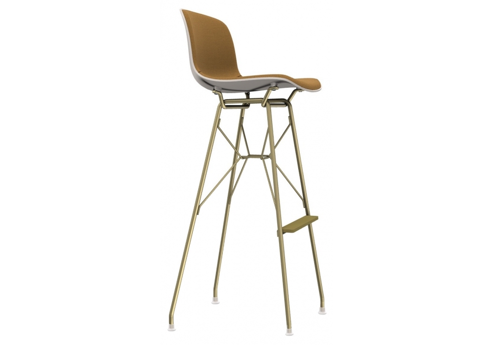 Troy Wireframe Polypropylene conçu par Marcel Wanders pour Magis est un tabouret avec structure en tige d'acier doré, cuivré ou peint. Siège en polypropylène avec rembourrage avant en mousse de polyuréthane ignifuge et recouvert de tissu ou de cuir. Disponible en différentes finitions et deux tailles.
