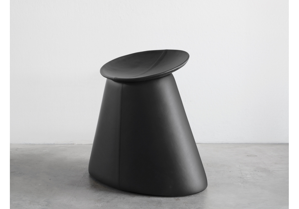 Svasato conçu par Verter Turroni pour ImperfettoLab est un tabouret en fibre de verre avec revêtement en cuir. Disponible en différentes tailles.