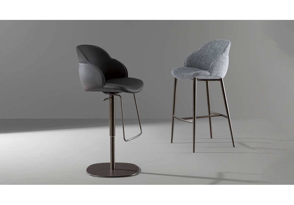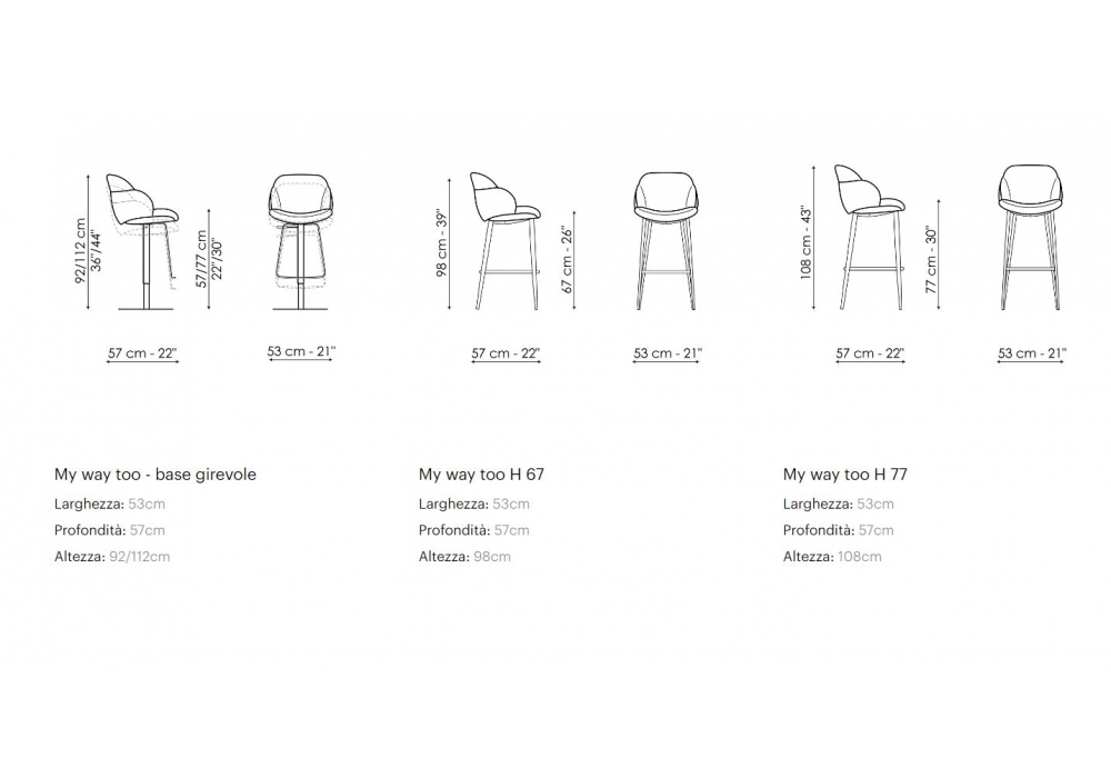 My Way too conçu et produit par Bonaldo est un tabouret avec base pivotante ou fixe (disponible en deux hauteurs d'assise) en métal et en différentes couleurs. La housse non amovible est disponible en différents tissus et finitions.