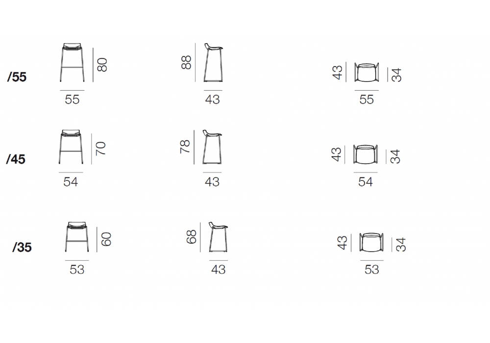 | Dimensions | 55 x 43 x H 88 cm; 54 x 43 x H 78 cm; 53 x 43 x H 68 cm. |