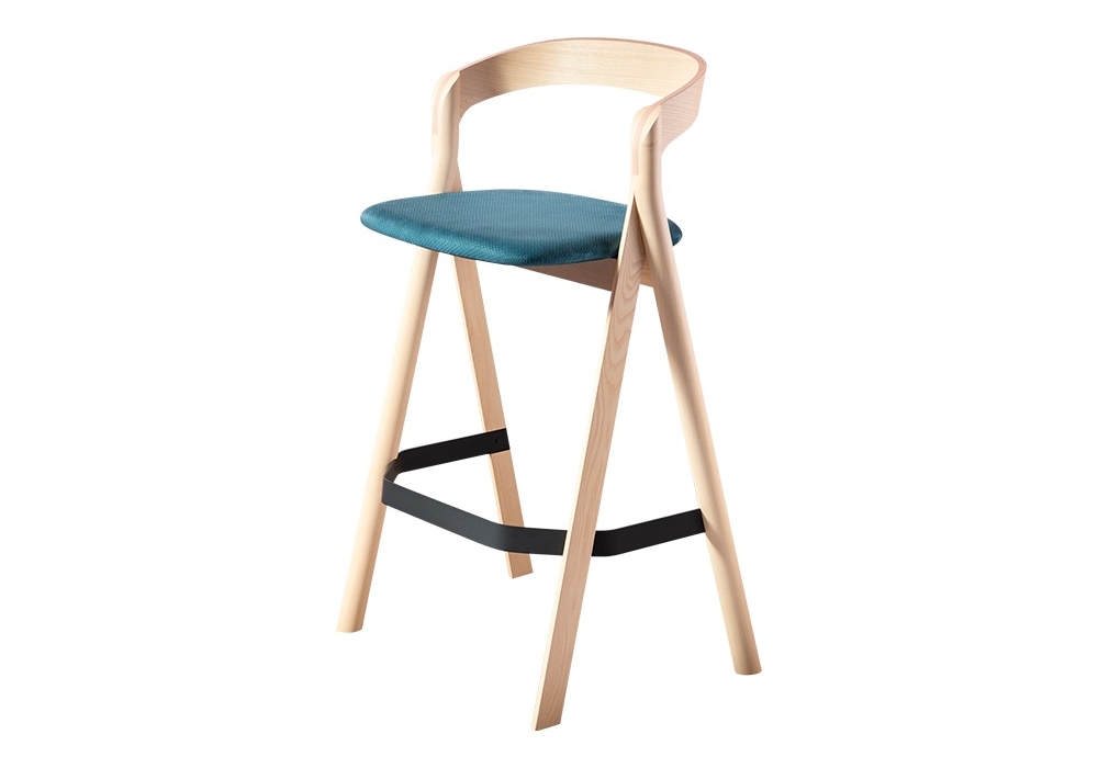 Diverge conçu par Skrivo pour Miniforms est un tabouret en frêne, assise recouverte de tissu ou de cuir écologique. Disponible en différentes finitions.