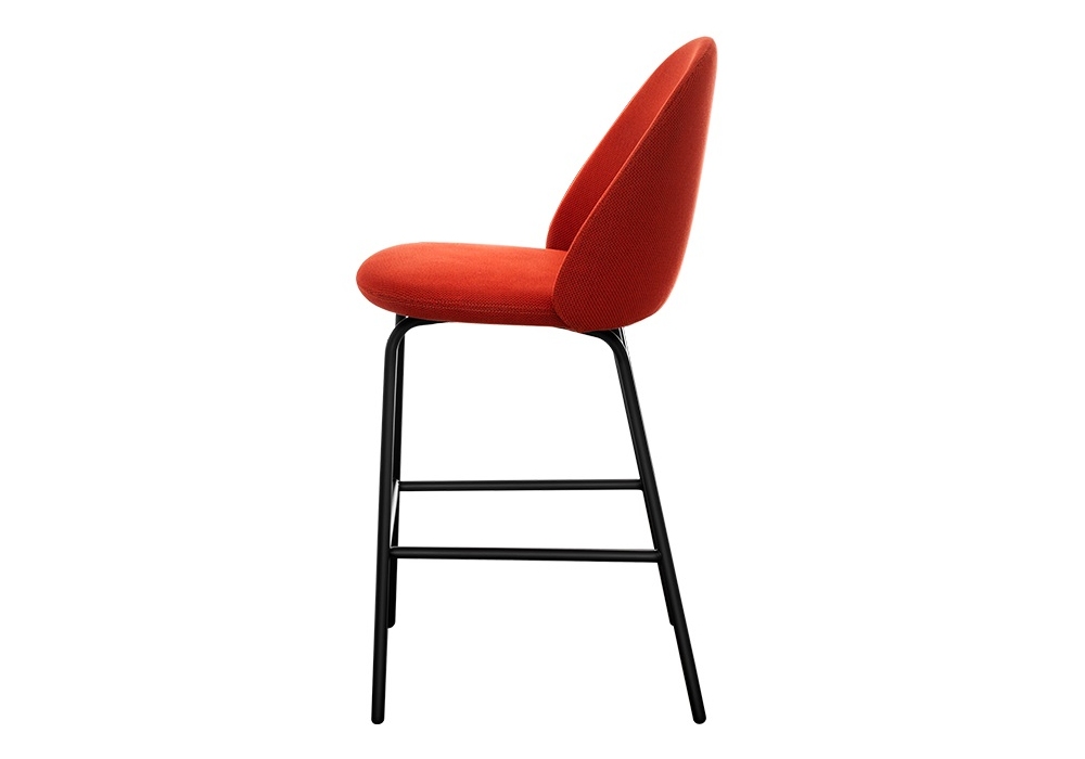 Iola conçu par E-ggs pour Miniforms est un tabouret avec base en métal, coque en polyuréthane souple moulé à froid, recouvert de tissu. Disponible en différentes finitions.