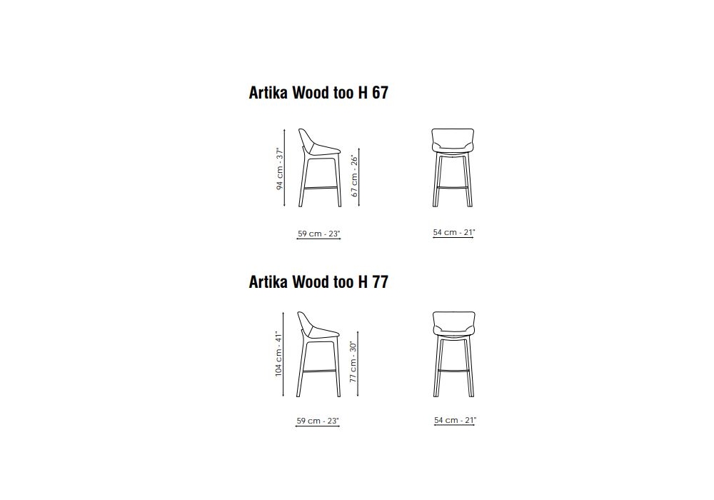 Artika Wood Too conçu par Gino Carollo pour Bonaldo est un tabouret avec structure en acier et rembourrage en polyuréthane expansé à froid. La housse non amovible est fabriquée dans différents tissus et couleurs. Pieds en frêne anthracite, noyer ou couleur naturelle. Le repose-pieds est en métal peint bronze ou plomb. Disponible en différents modèles.