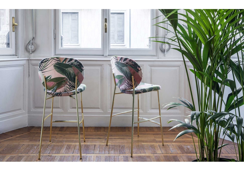 Inès conçu par Busetti, Garuti e Redaelli pour Calligaris est un tabouret composé d'une structure en métal et d'une assise rembourrée en tissu.