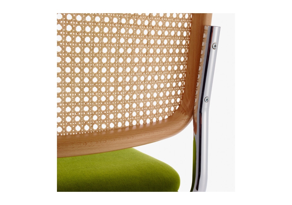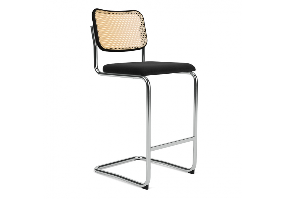 Cesca, conçu par Marcel Breuer pour Knoll, est un tabouret avec structure en tube d'acier chromé ou peint en différentes finitions mates. Dossier en hêtre paille peint en naturel ou en noir et assise revêtue de cuir ou de tissu.
