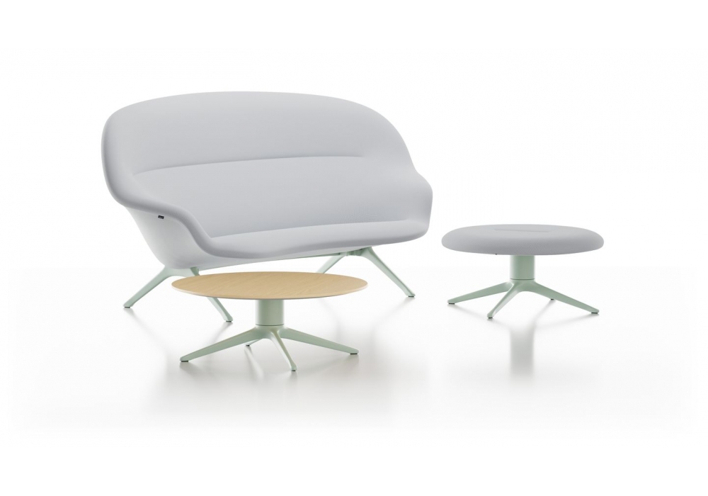 Abalon Platform conçu par Ronan & Erwan Bouroullec pour Vitra est un tabouret réalisé avec surface d'assise en contreplaqué avec mousse de polyuréthane expansé et feutre de polyester, revêtement amovible en tissu tricoté et base à quatre branches non pivotante en aluminium moulé sous pression, revêtement en poudre .