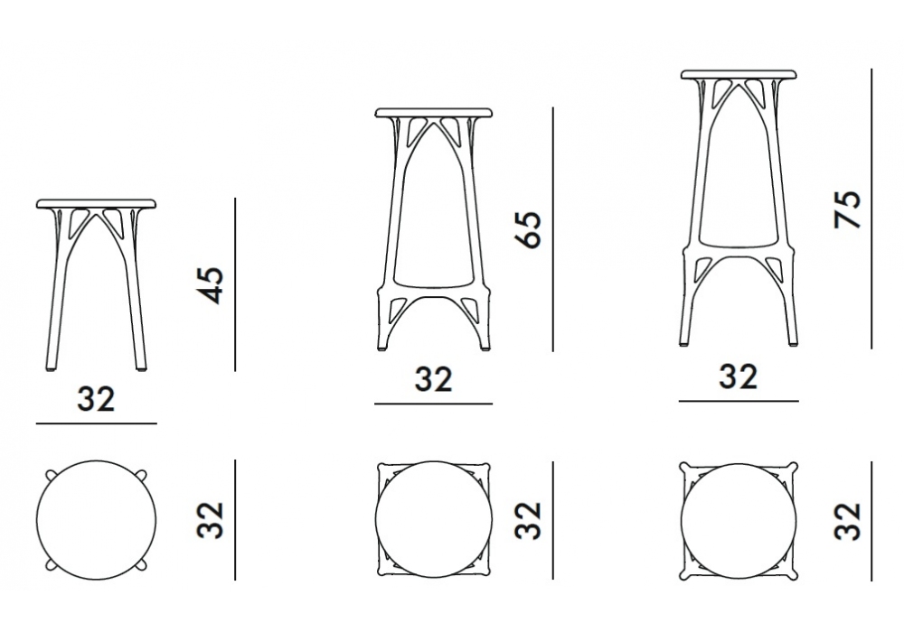 | Hauteur de siège | 45 cm; 65 cm; 75 cm. |