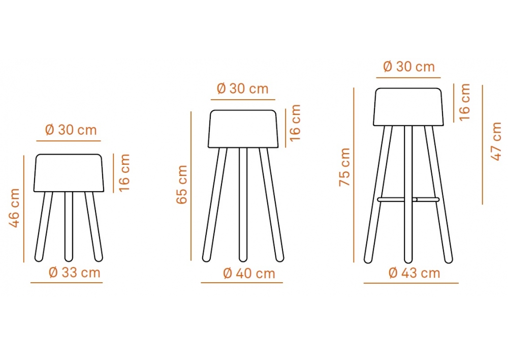 | Dimensions | • Ø 33 x H 46 cm; • Ø 40 x H 65 cm; • Ø 43 x H 75 cm |