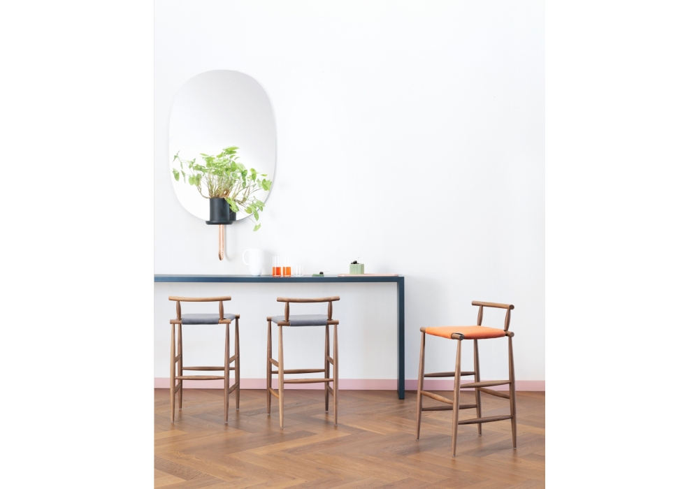 Pelleossa conçu par Francesco Faccin pour Miniforms est un tabouret avec structure en chêne, assise en cuir ou paille de rivière. Disponible en différentes finitions.