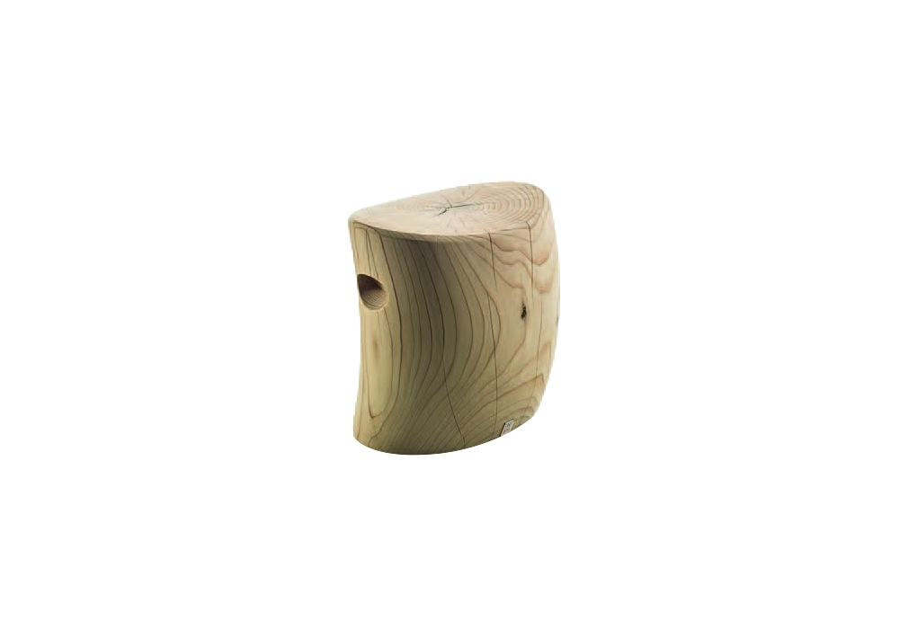 Ovall conçu par Riva 1920 est un tabouret en cèdre massif parfumé usiné à partir d'un seul bloc, de forme arquée et équipé de rainures latérales pour faciliter la préhension.