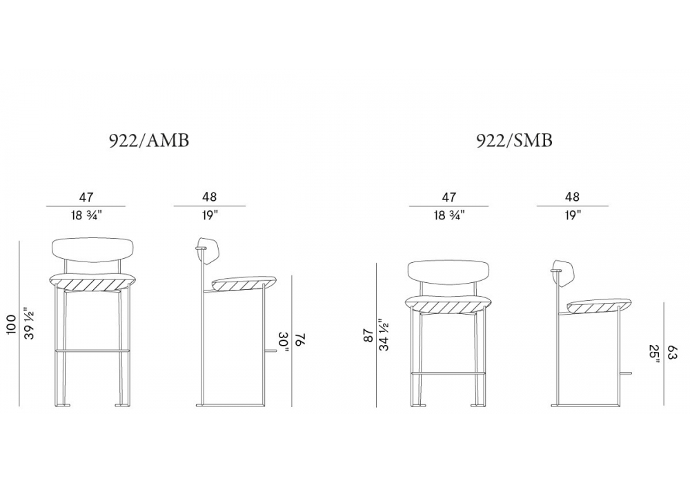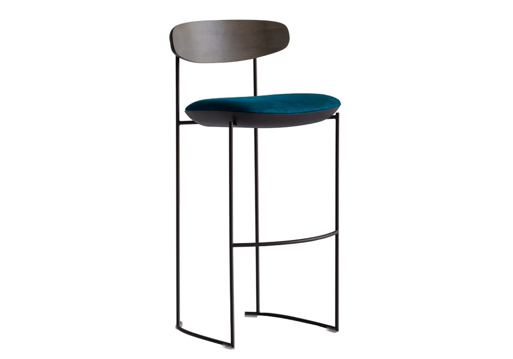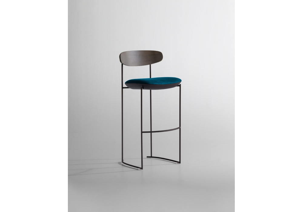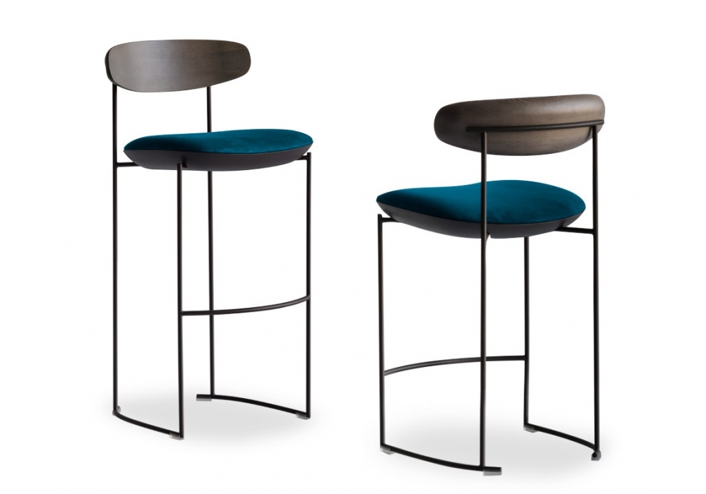Keel Light conçu par M + V pour Potocco est un tabouret avec structure en tige de métal peint gaufré, dossier en frêne massif et assise rembourrée en mousse de polyuréthane ignifuge avec revêtement en divers tissus, cuirs ou éco-cuirs.