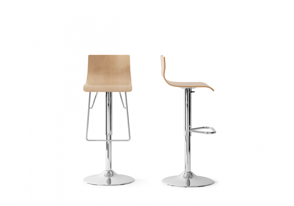 Upper conçu par Nicola Cacco pour Sitlosophy est un tabouret avec coque en bois de hêtre et structure chromée.