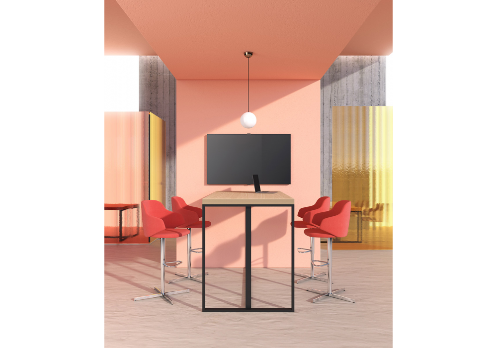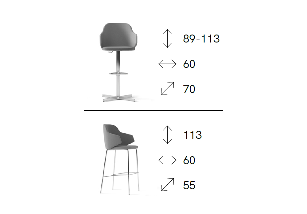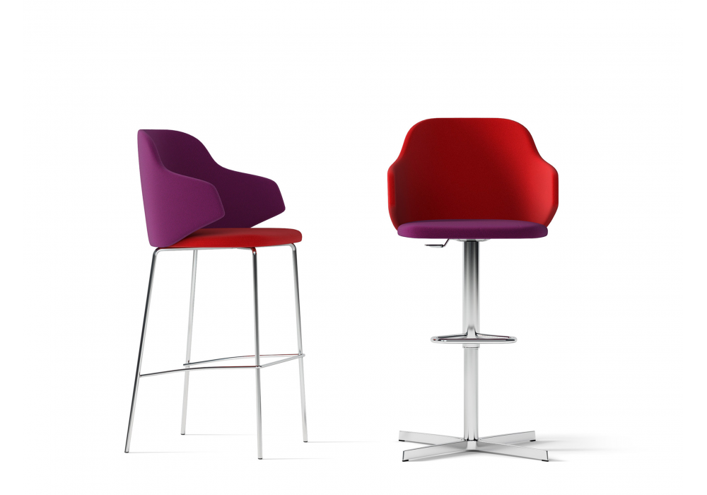 Host conçu par R&D Sitlosophy pour Sitlosophy est un tabouret avec base pivotante à 4 branches en aluminium ou 4 pieds chromés. Le siège est en contreplaqué courbé avec rembourrage en mousse de polyuréthane souple et revêtement en différents tissus, cuirs ou éco-cuirs.