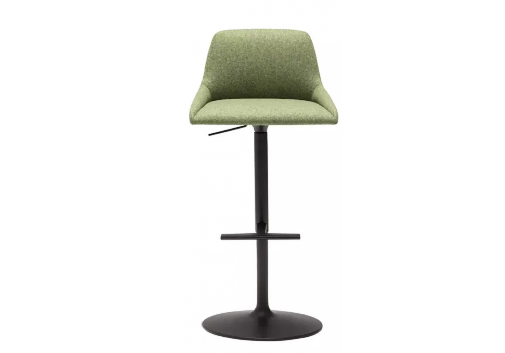 Alya conçu par Lievore Altherr Molina pour Andreu World est un tabouret avec une base de colonne pivotante en métal et un revêtement en différents tissus, cuirs ou simili cuirs.