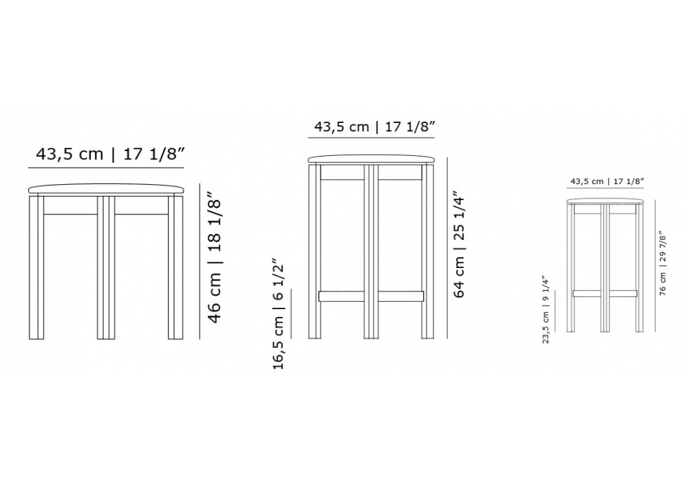 | Dimensions | Ø 43.5 x H 46 cm; Ø 43.5 x H 64 cm; Ø 43.5 x H 76 cm. |