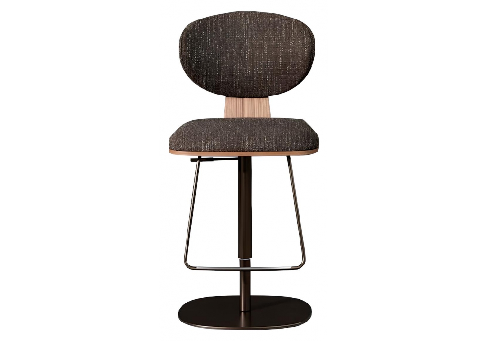 Olos Too conçu par Mauro Lipparini pour Bonaldo est un tabouret en bois, base en métal peint, assise et dossier rembourrés recouverts de tissu ou de cuir. Réglable en hauteur grâce à un piston à gaz inséré à l'intérieur de la structure. Disponible en différentes finitions.