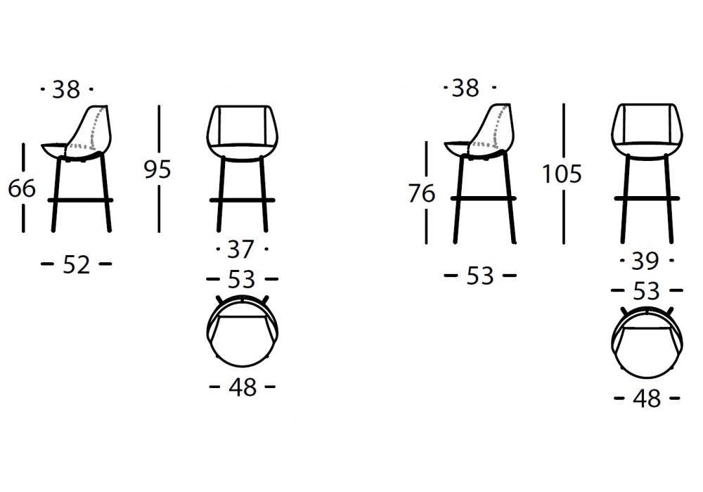 | Dimensions | • 53 x 52 x H 95 cm; • 53 x 53 x H 105 cm |