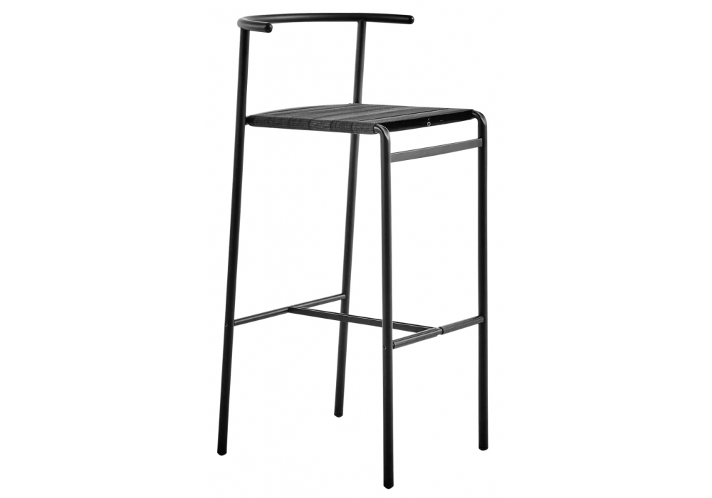 Café Chair conçu par Philippe Starck pour Baleri Italia est un tabouret avec une structure en tubes d’acier peints avec des poudres époxy dans les couleurs spécifiées. Assise en lasten (sangles en latex naturel et polypropylène noir). Embouts et pieds en caoutchouc noir.