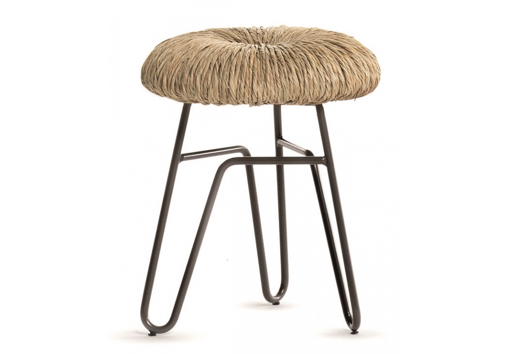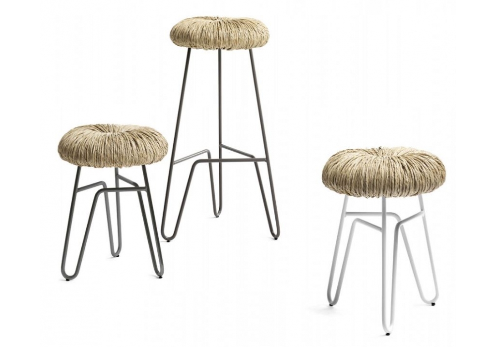 Donut conçu par Alessandra Baldereschi pour Mogg est un tabouret réalisé avec assise rembourrée en paille et structure en métal peint. Disponible en différentes finitions et dimensions.