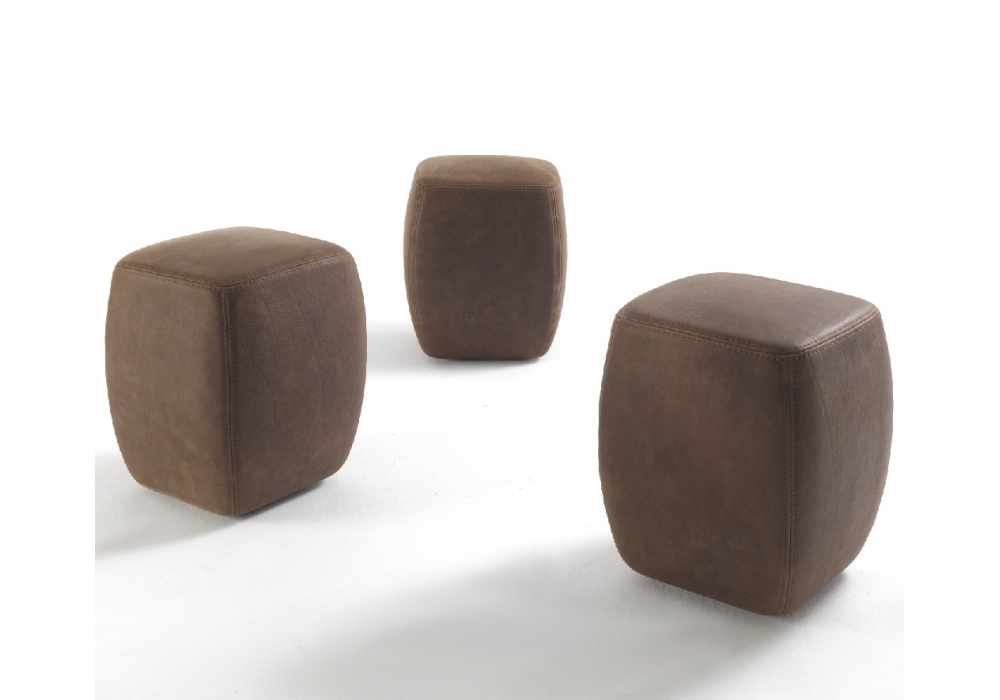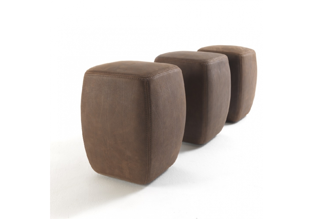 Betty conçu par Terry Dwan pour Riva 1920 est un tabouret avec un rembourrage doux et un revêtement en cuir ou en tissu, travaillé et cousu à la main, caractérisé par des coutures d'angle doubles en deux versions.