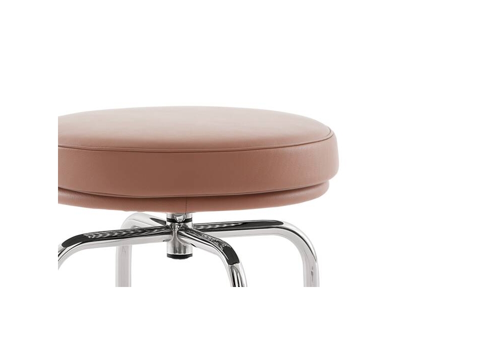 8 Tabouret Tournant conçu par Charlotte Perriand pour Cassina est un tabouret pivotant à 4 pieds, réalisé avec une structure chromée ou peinte et un revêtement en tissu ou cuir.