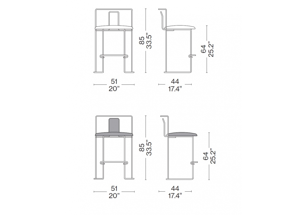 Gaja conçu par Kazuhide Takahama pour Cassina est un tabouret de bar réalisé avec une structure en tige de métal courbé chromée ou peinte, un rembourrage en mousse de polyuréthane flexible et un revêtement en tissu ou en cuir.
