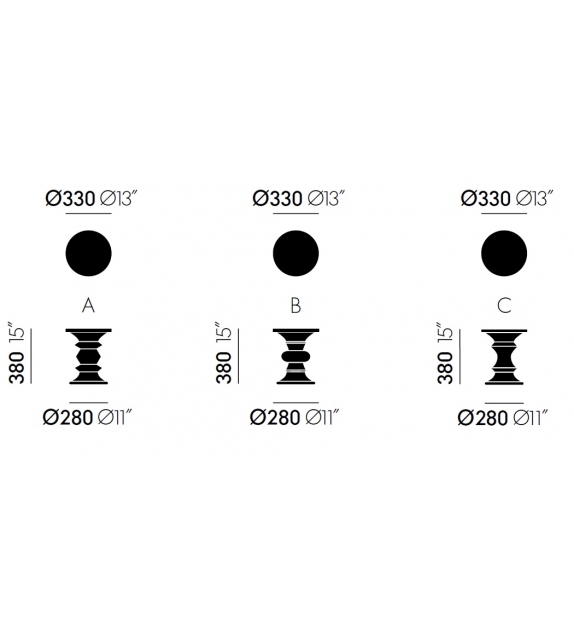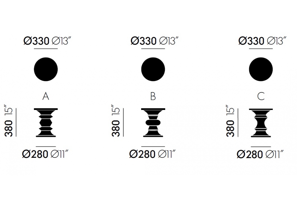 Vitra Eames stool tabouret: Charles & Ray Eames, 1960. En 1960, l’Eames Office se voyait confier par la société Time Inc. l’aménagement de trois halls d’entrées du Rockefeller Center à New York. Outre la transformation totale de l’aménagement intérieur, ce projet engendra également la création des très confortables Lobby Chairs ainsi que d’une série de tabourets en noyer massif. Les tabourets dressés au tour, également utilisables comme petites tables d’appoint ainsi que l’avait souhaité Ray Eames, se différencient dans la partie centrale par des profils différents.