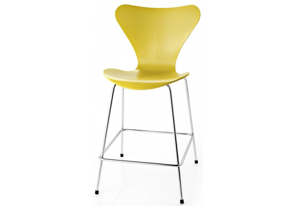 Series 7 Counter Stool conçu par Arne Jacobsen pour Fritz Hansen est un tabouret réalisé avec une coque en bois plaqué ou en frêne laqué ou coloré et des pieds en acier tubulaire chromé ou thermolaqué. Disponible en différentes finitions.