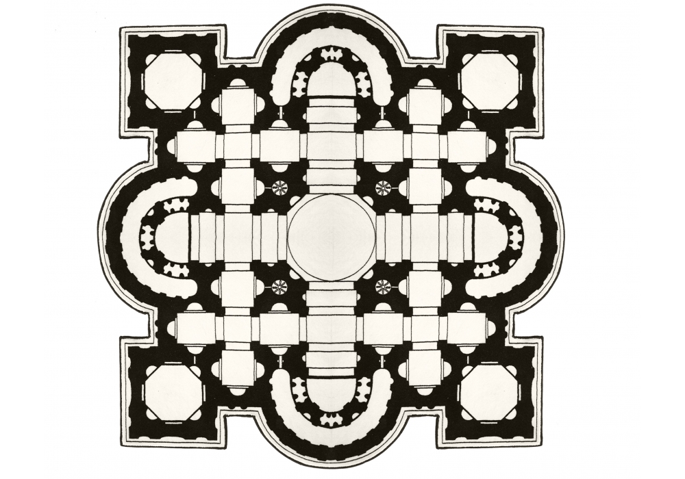 Pietro conçu par Mura & Pezza pour Mogg est un tapis imprimé carré avec un bord affleurant.