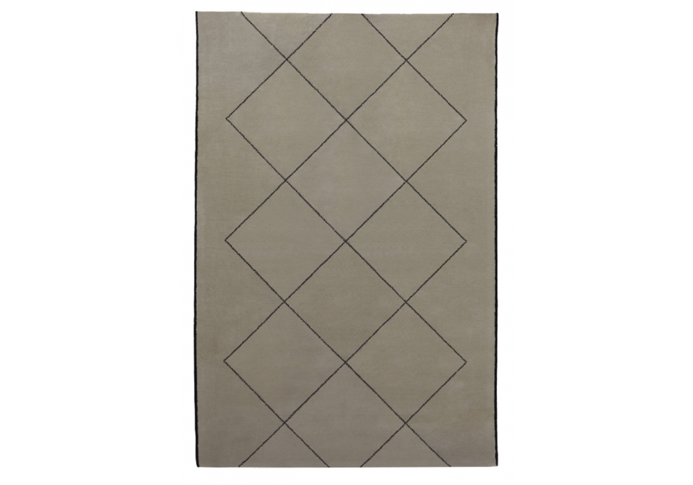 Enigmi Platonico conçu pour Elisa Ossino pour Porro est un tapis en laine disponible en deux finition: beige et gris. Avec lignes noires.