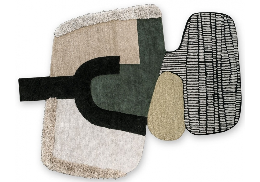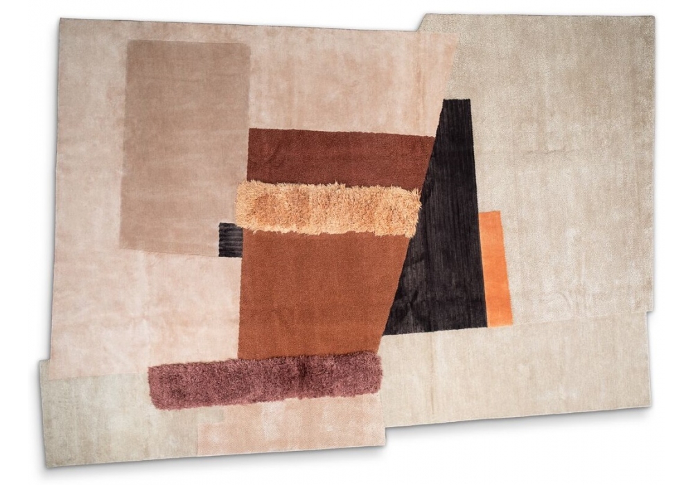Himani est un tapis conçu par Baxter P. et il s'agit d'un tapis de forme irrégulière avec des contrastes de texture, des éléments tridimensionnels, des surfaces rugueuses et lisses. Composé de soie végétale et de laine, il se décline en différent modèles et dimensions.