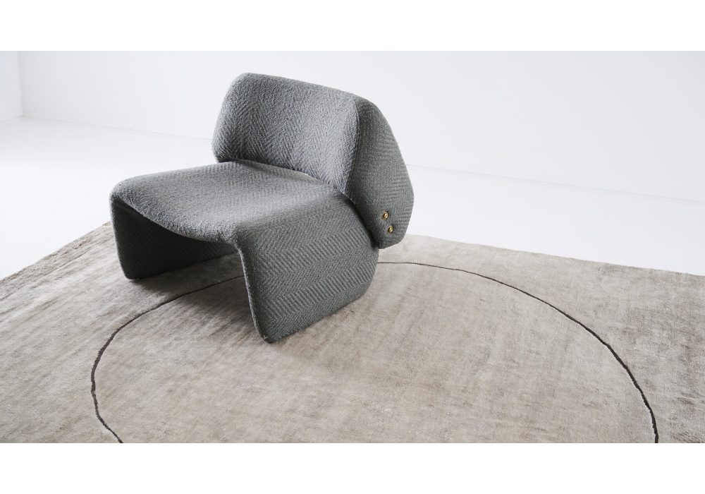 Ritagli conçu par Elisa Ossino pour Amini est un tapis noué main avec des franges tournées sur le dos et recouvertes de tissu. Disponible en différentes finitions.