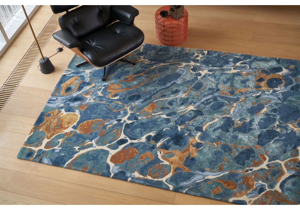 Text conçu par Serge Lesage est un tapis tufté main en viscose et laine de Nouvelle Zélande. Il est disponible en différentes tailles.