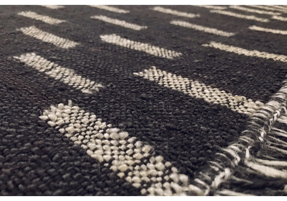 Vibration 2 conçu par Serge Lesage est un tapis en jute tissé à la main. Il est disponible en différentes tailles.