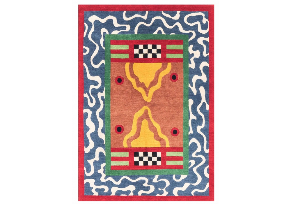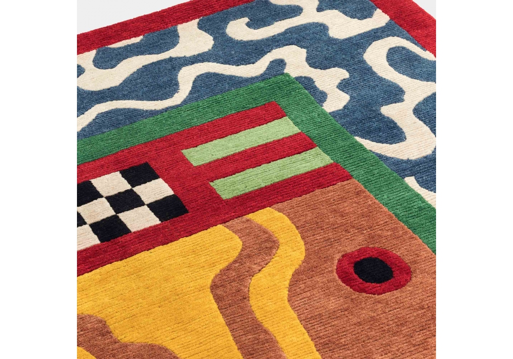 Birds conçu par Nathalie Du Pasquier pour Memphis Milano est un tapis en laine fait main par divers artisans. Edition limitée à 36 pièces. Disponible en deux dimensions.