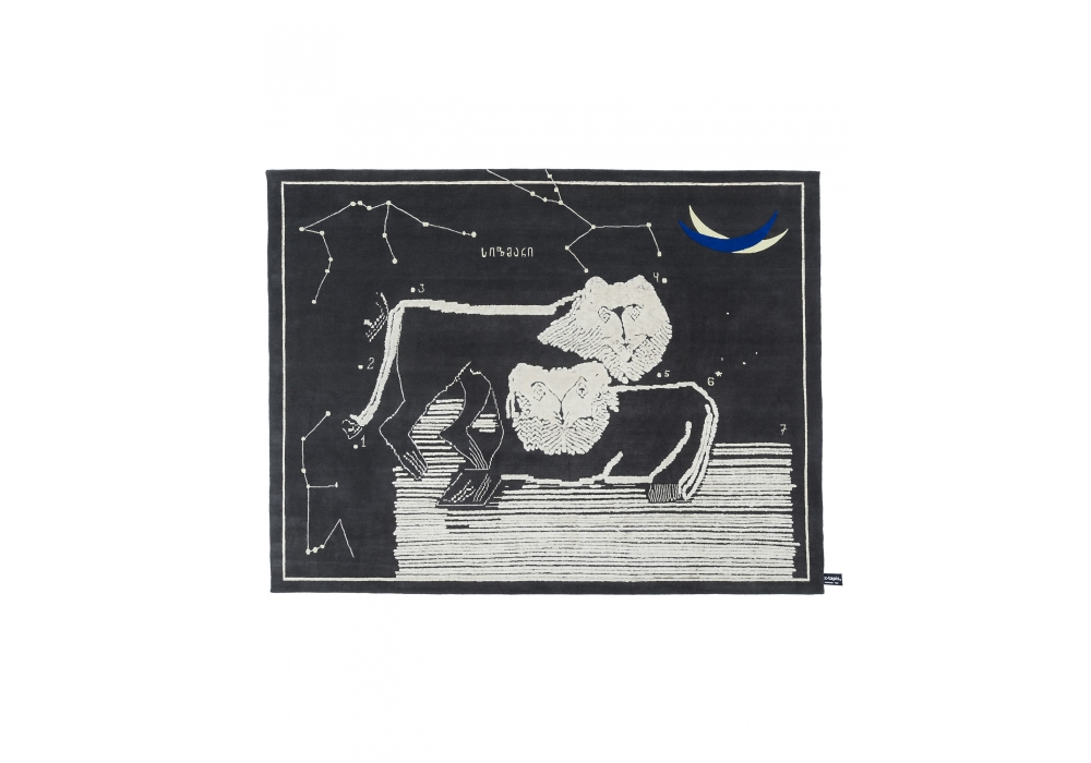 The Night of a Hunter - Lions at Night conçu par Rooms Studio pour CC-Tapis est un tapis réalisé à la main en laine de l'Himalaya.