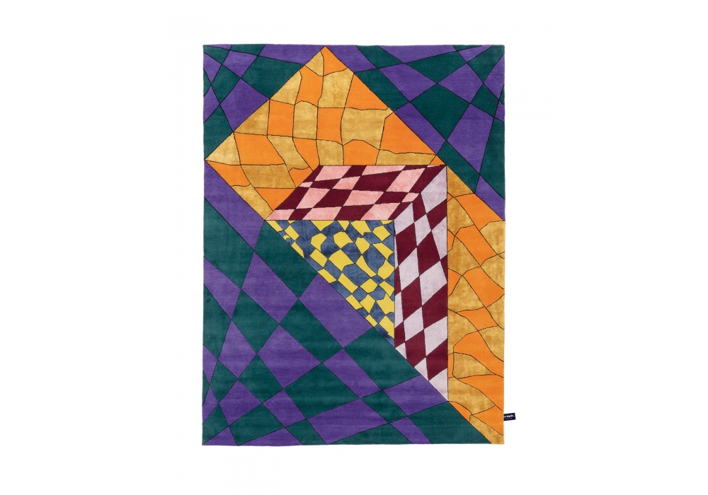 Xequer E conçu par Martino Gamper pour CC-Tapis est un tapis réalisé à la main en laine himalayenne, soie et lin.