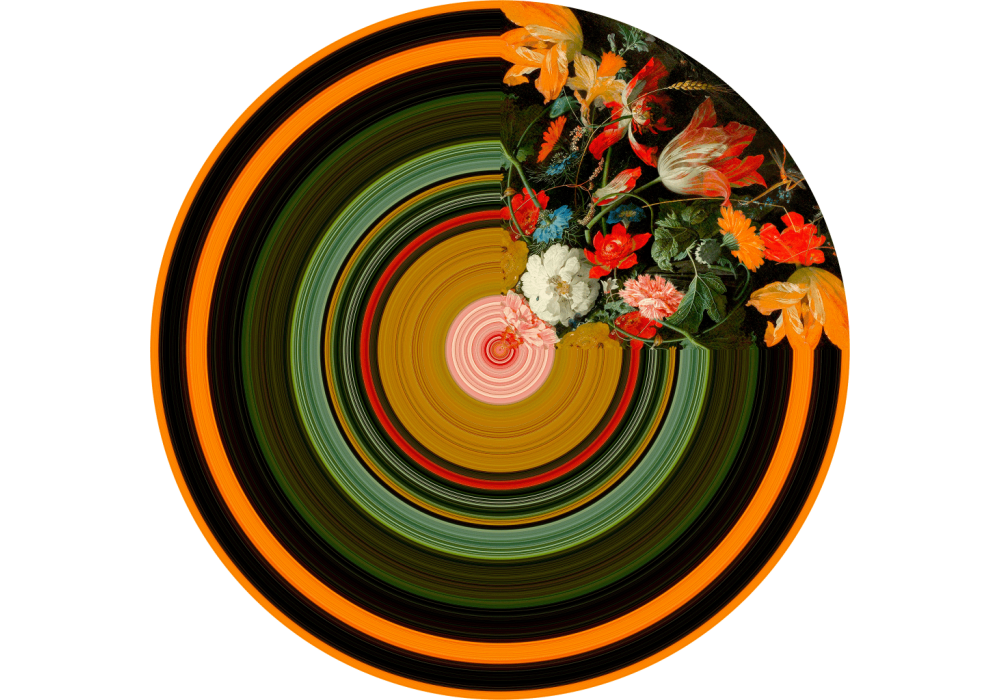 Glitch Round Quarter conçu par Richard Hutten pour Qeeboo est un tapis circulaire en polyester et polyamide antidérapant avec différentes nuances de couleur.