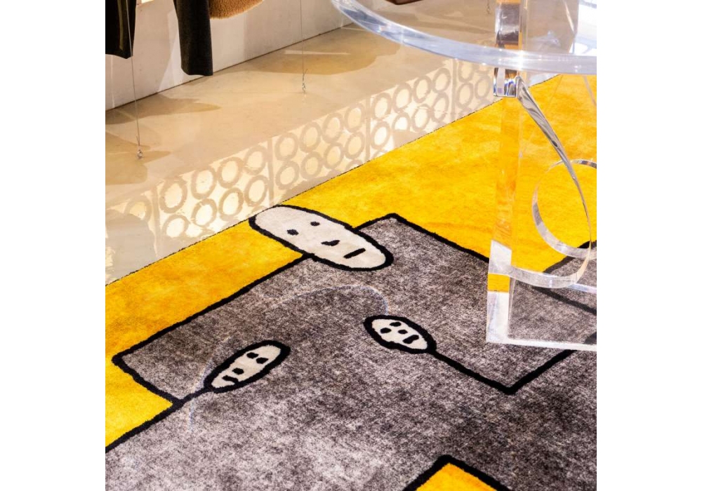 Dog Yellow Rectangular conçu par Andrea Branzi pour Qeeboo est un tapis de forme quadrangulaire en polyester et polyamide antidérapant avec différentes nuances de couleur.