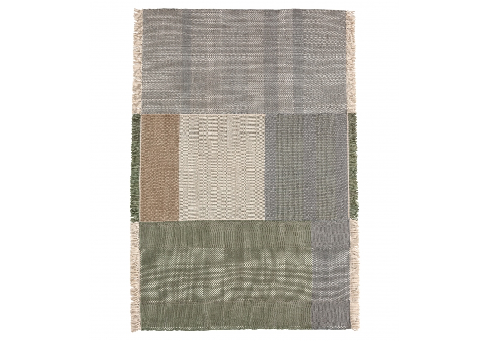 Tres Outdoor conçu par Nani Marquina et Elisa Padrón pour Nanimarquina est un tapis d'extérieur encadré à la main en fibre PET 100% recyclée. Disponible en différentes finitions et dimensions.