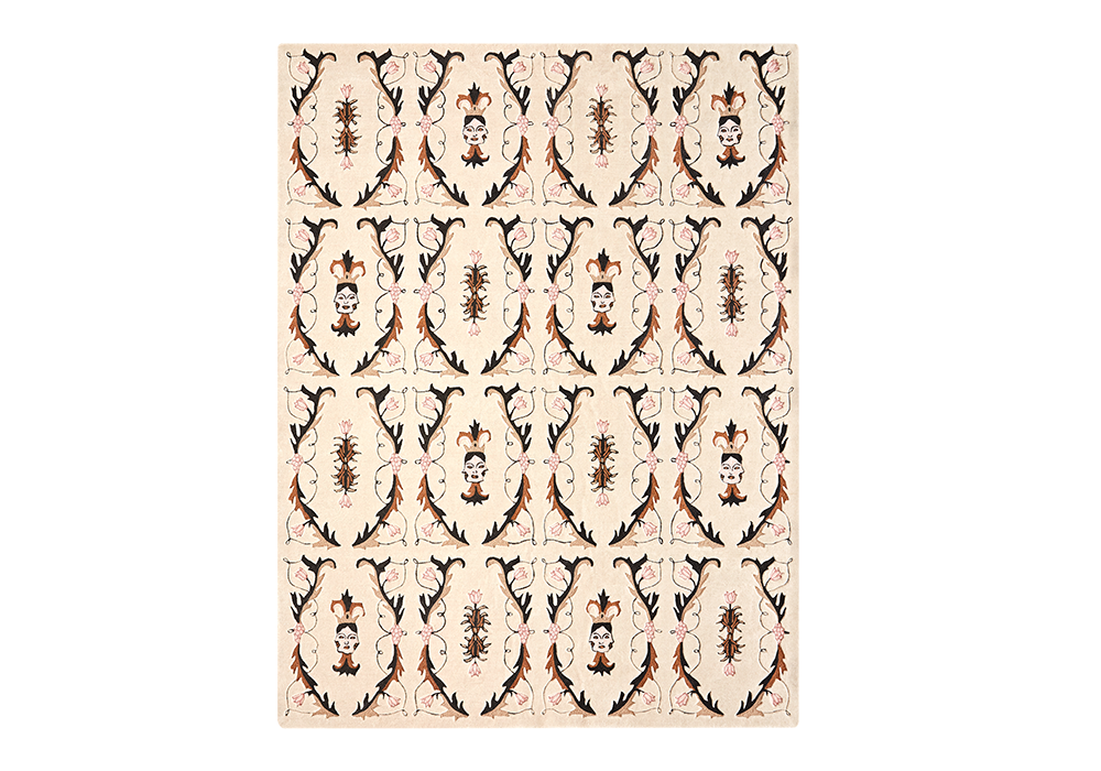 Dreams Medieval Faces conçu par Brianda Fitz-James Stuart pour Gan est un tapis tufté à la main en 100% laine, dos en coton. Disponible en deux dimensions.