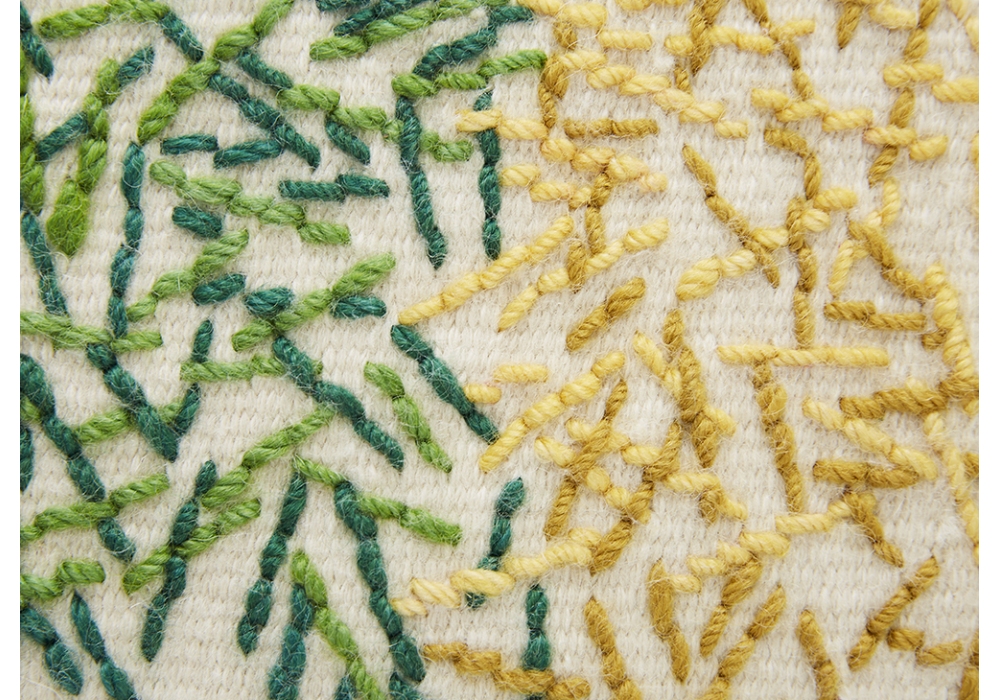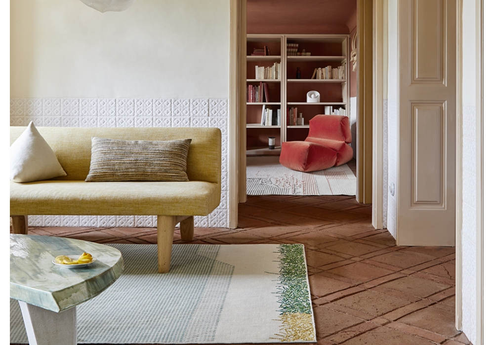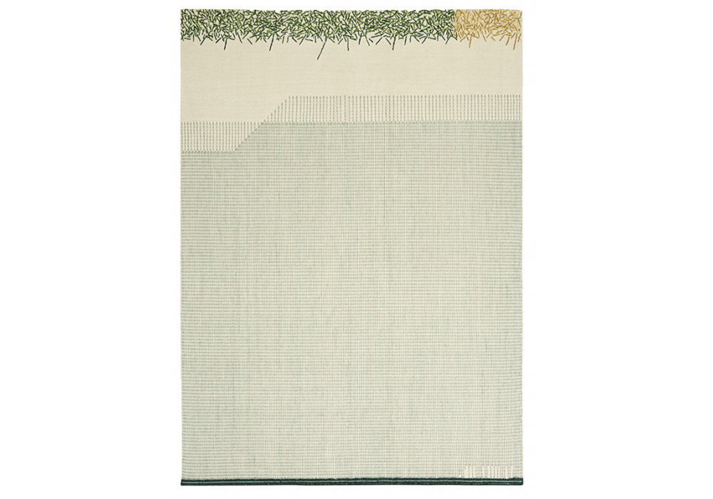 Backstitch Calm conçu par Raw-Edges pour Gan est un tapis 100% laine réalisé avec la technique de broderie Kilim +. Disponible en différentes finitions et dimensions.