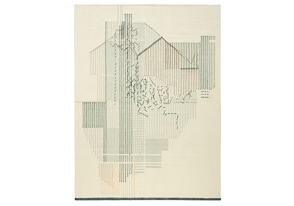 Backstitch Composition conçu par Raw-Edges pour Gan est un tapis 100% laine réalisé avec la technique de broderie Kilim +. Disponible en différentes finitions et dimensions.