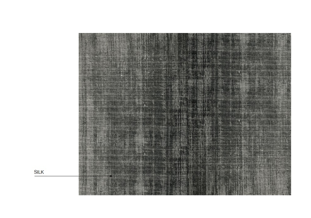 Monet conçu par AL1 pour Longhi est un tapis rectangulaire fait à la main sur des métiers à tisser en bois 100% soie avec fabrication Loop&Cut : alternance de fils et de nœuds torsadés sur eux-mêmes et coupés.