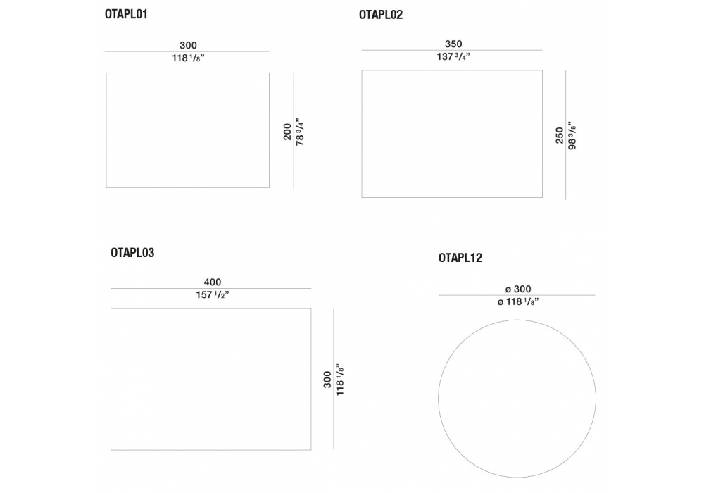 | Dimensions | 300 x 200 cm; 350 x 250 cm; 400 x 300 cm; Ø 300 cm. |
