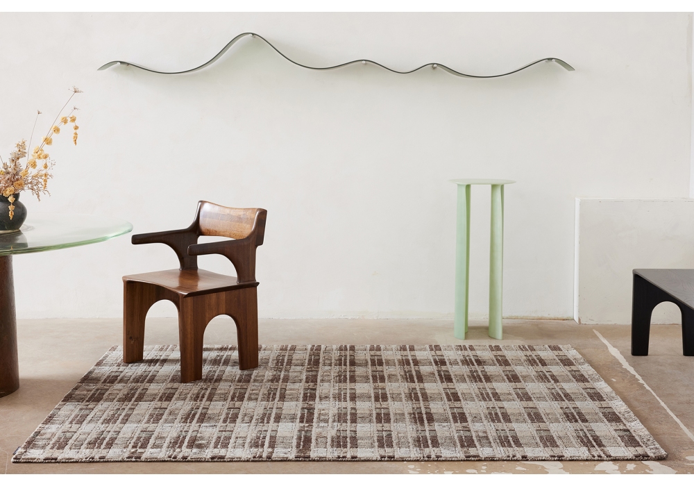 Paolo conçu par Serge Lesage est un tapis tissé à la main en laine et viscose de bambou. Disponible en différentes dimensions.