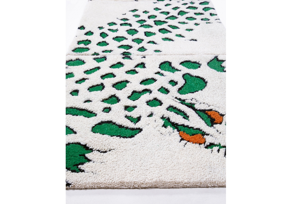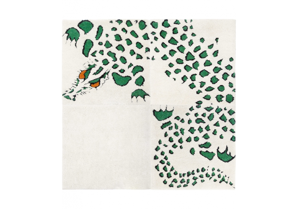 Tapizoo, Tapidrago conçu par Roberto Gabetti et Aimaro Isola pour Amini est un tapis en 100% pure laine; noué à la main. Le tapis est composé de 4 carrés de 93 × 93 cm qui forment 2 combinaisons de 186 × 186 ou 93 × 372 cm.