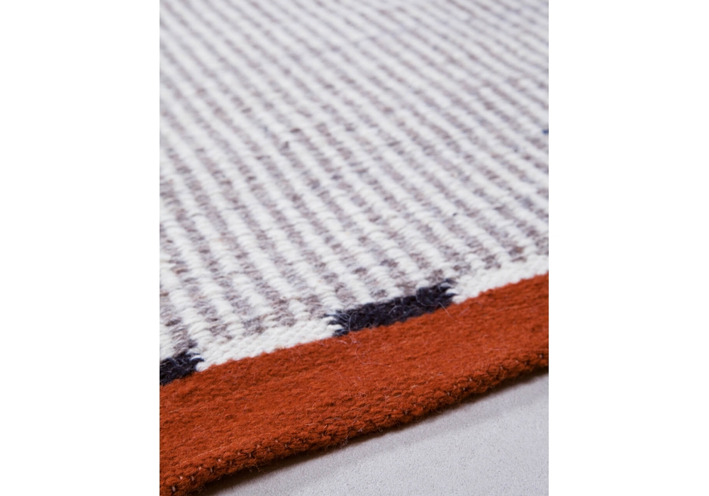 Khilim conçu par AltherrDesilePark pour Amini est un tapis réalisé en 100% laine; Tufté à la main en laine douce et résistante adaptée aux zones à fort trafic. Disponible en différentes finitions.
