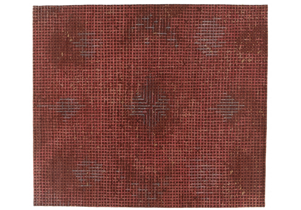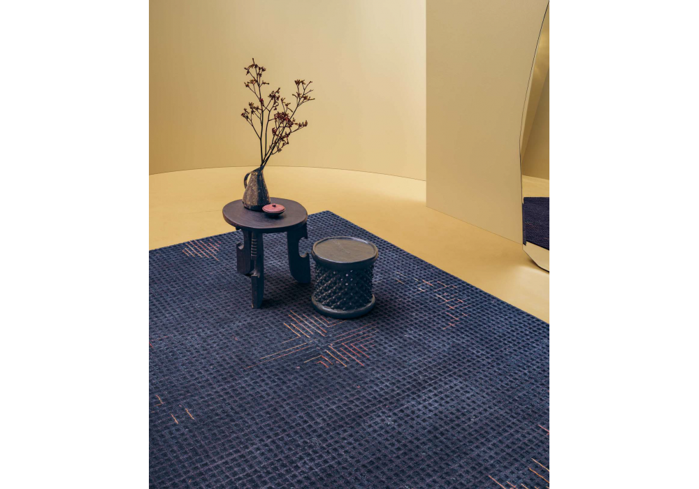 Meteo conçu par Inga Sempé pour Golran est un tapis persan classique noué à la main, composé de 75 % de laine et 25 % de soie. Il est obtenu grâce à l'habile technique artisanale népalaise capable de donner un résultat similaire à celui du pointillisme, qui utilise des fils de laine et de soie colorés individuellement pour chaque point du dessin, comme si chaque nœud était l'unique carreau d'une mosaïque.
