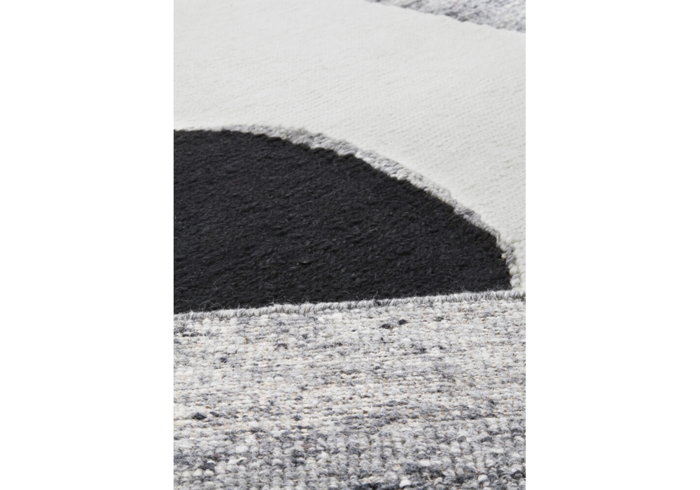Jean Dark Grey conçu par Juma pour Amini est un tapis noué main avec la technique sumak. Composé à 100% de laine.